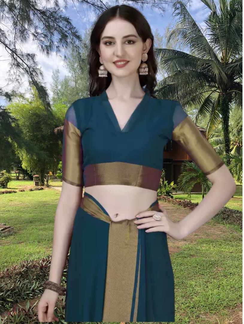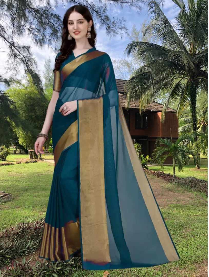 Name : | S4s petrol Blue Running Saree |